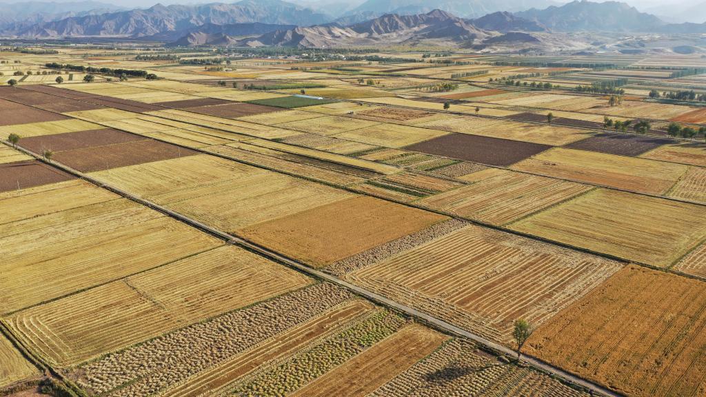 圖為9月29日拍攝的香日德連綿的農田。新華社發(潘彬彬攝)