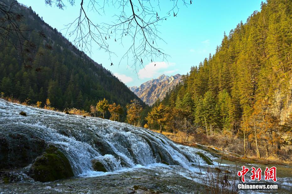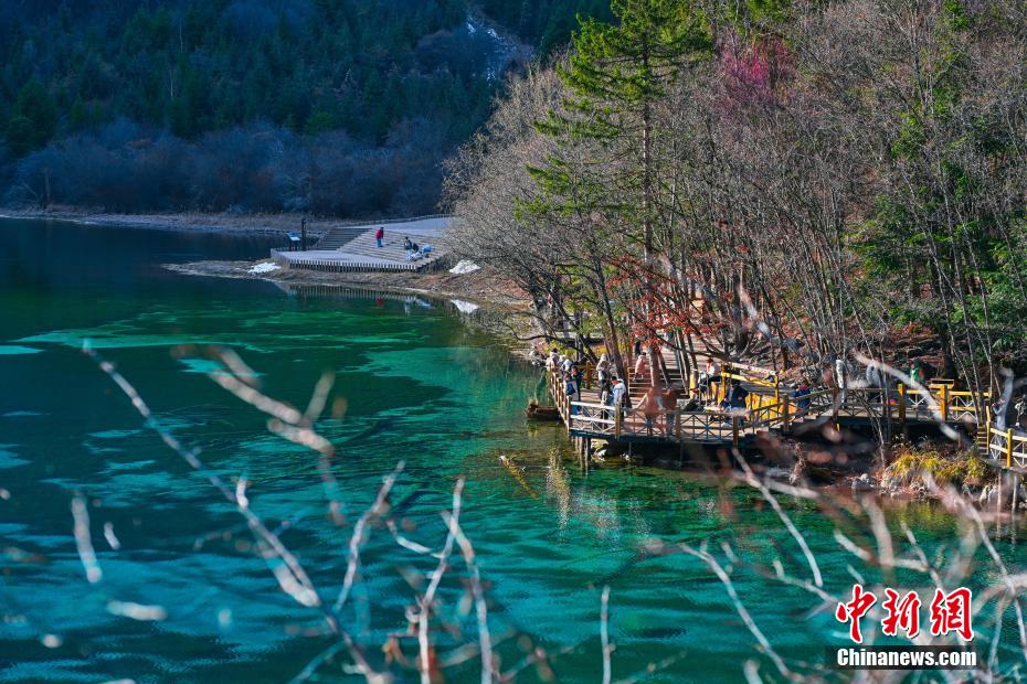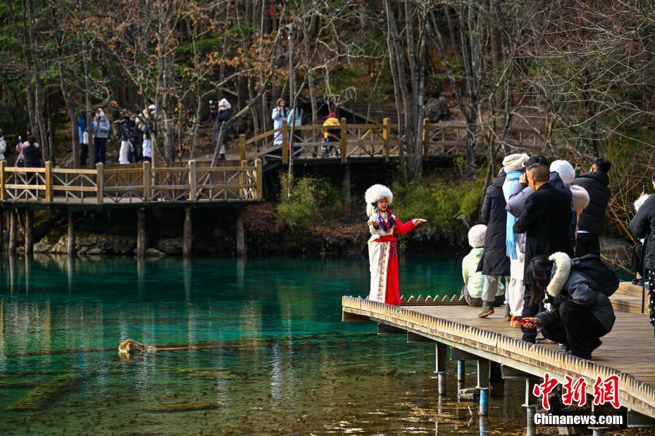 12月6日,四川省阿壩藏族羌族自治州九寨溝景區陽光明媚,美不勝收,吸引游客前來觀光游覽。