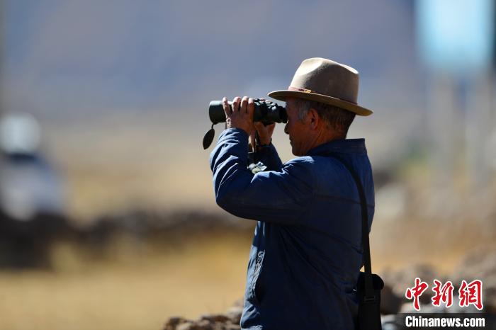 圖為西藏林周縣黑頸鶴巡護員旦增,每年入冬后他要負責轄區黑頸鶴安全過冬。 江飛波 攝