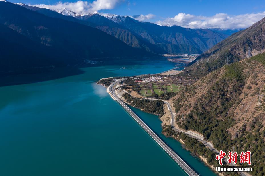 作為西藏目前“顏值最高”的高等級公路,拉林高等級公路在林芝市境內的多布特大橋路段又被譽為西藏“最美水上公路”,公路橫跨湛藍的水面,顏值爆表。 何蓬磊 攝