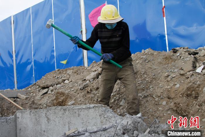 挖掘機開挖著溝渠,工人們熱火朝天在施工。10日,地處西藏阿里地區(qū)巴嘎鄉(xiāng)(塔爾欽)國際旅游小鎮(zhèn)正在施工建設(shè)。