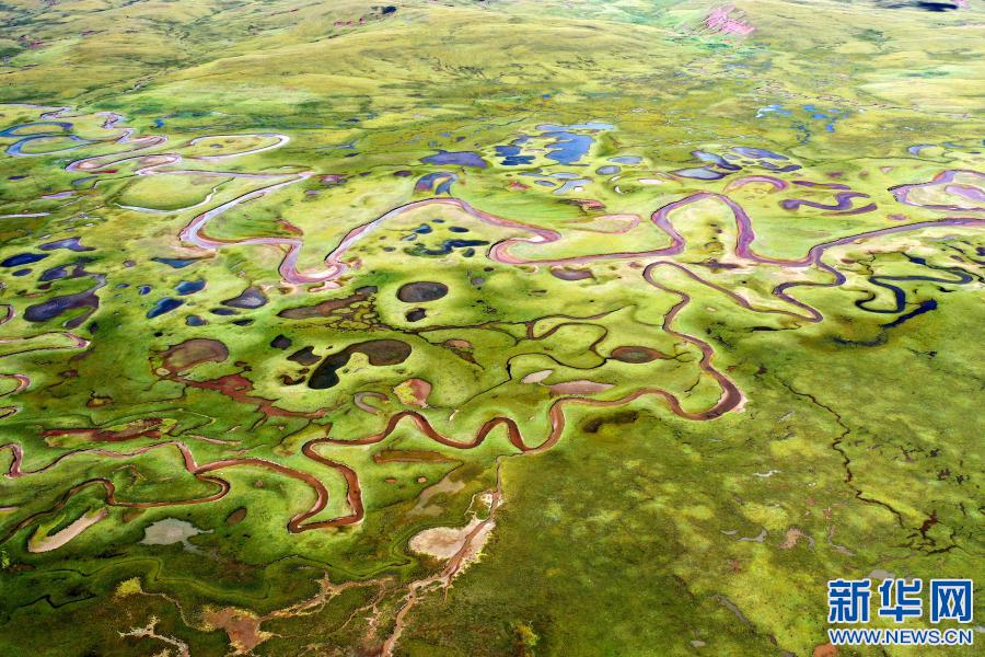 在西藏昌都市貢覺(jué)縣拉妥鄉(xiāng)拍攝的拉妥濕地(2020年9月28日攝,無(wú)人機(jī)照片)。新華社記者 詹彥 攝
