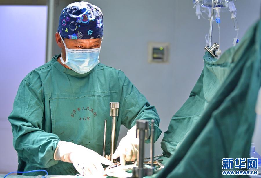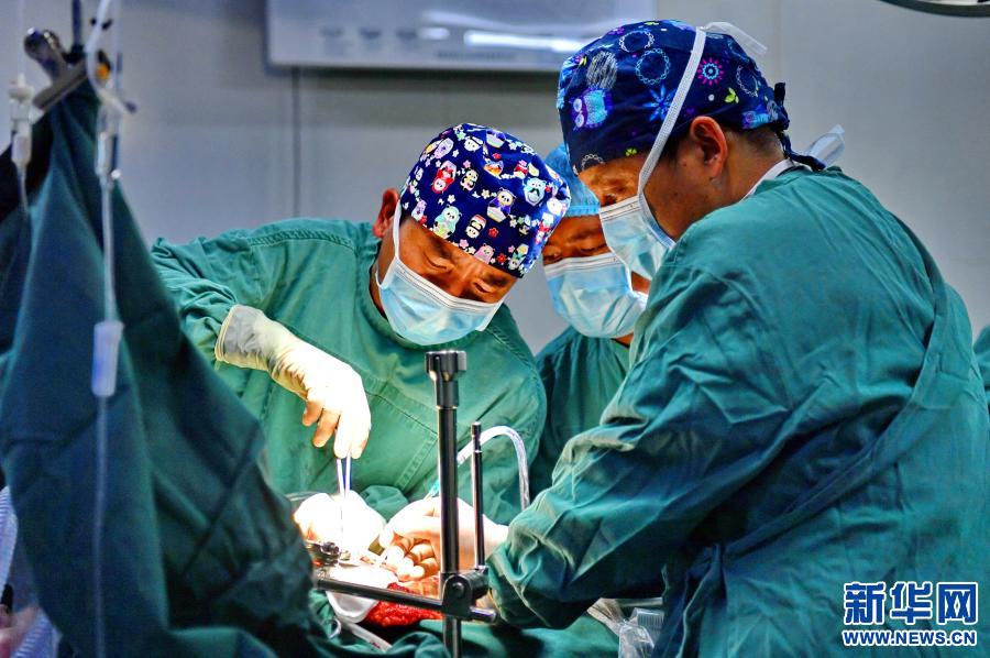 在拉薩市人民醫院第二手術室,主治醫師醫生扎西云旦為包蟲病患者做手術(2020年12月31日攝)。新華社記者 張汝鋒 攝