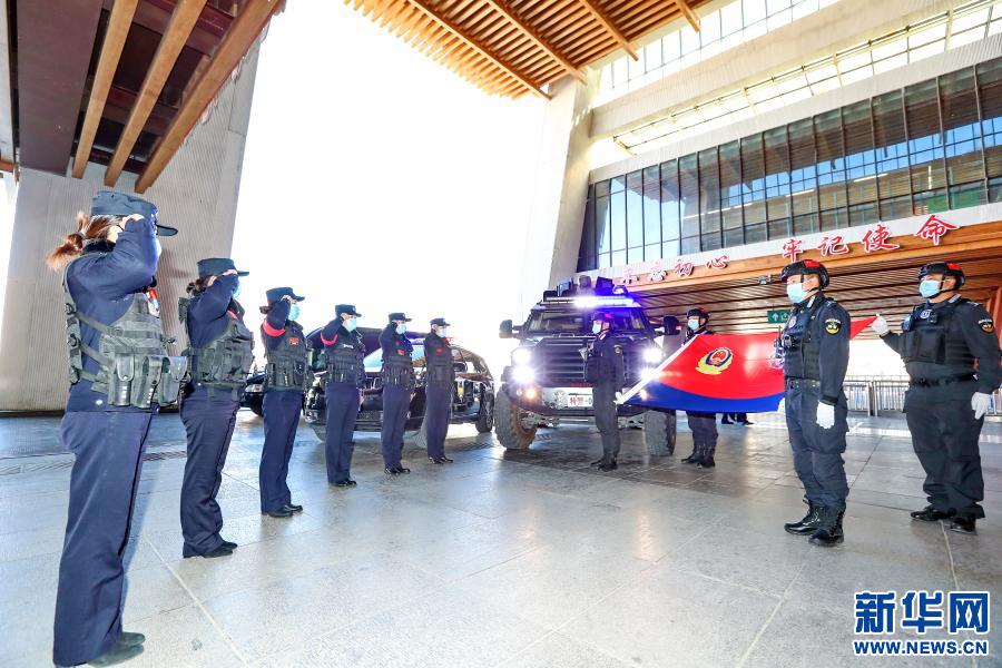 1月10日, 拉薩火車站派出所“女子格桑花”警組佇立在警旗前宣誓。