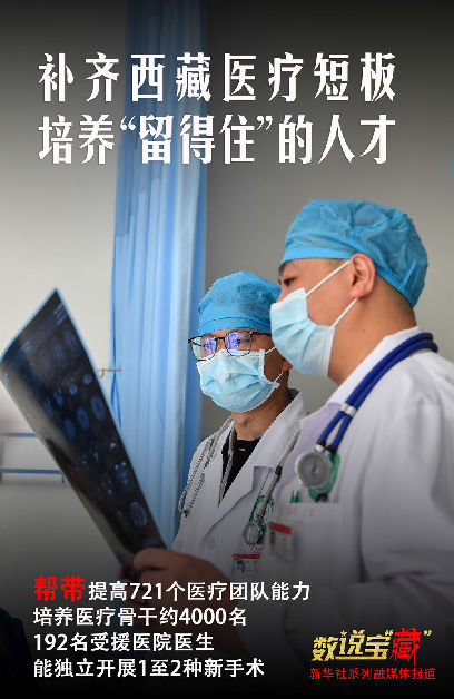 醫療人才“組團式”援藏實施以來,共幫帶721個醫療團隊、2031名本地醫務人員、培養醫療骨干約4000名,已有192名受援醫院的醫生能獨立開展1種至2種新手術,實現了400多種較大疾病不出藏,大多數“中病”不出市(地)就能得到治療。