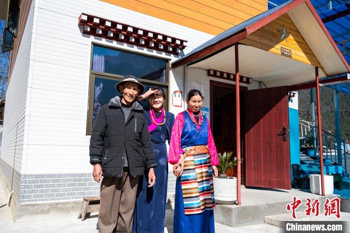 圖為1月28日,察隅縣上察隅鎮榮玉村阿迪(右一)一家在新居前合影。 中新社記者 何蓬磊 攝