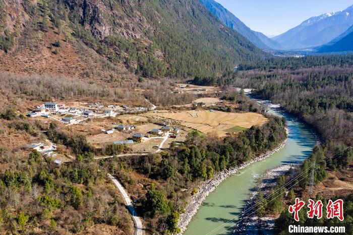 圖為1月28日,航拍察隅縣上察隅鎮西巴村。 中新社記者 何蓬磊 攝