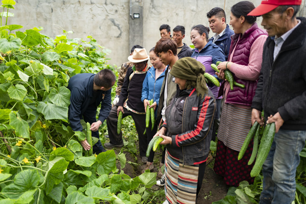 玉麥鄉(xiāng)群眾在蔬菜大棚里學(xué)習(xí)種植蔬菜技術(shù)(2020年7月30日攝)。 新華社記者 普布扎西 攝