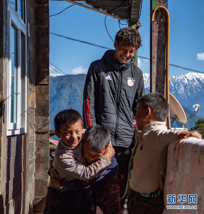 在西藏林芝市墨脫縣德興鄉巴登則村,旺前羅布向弟弟們展示自己的球技(2月9日攝)。新華社記者 孫非 攝