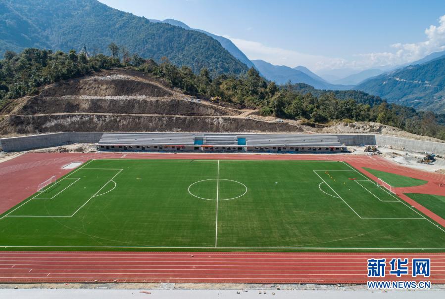 這是墨脫縣新修建的11人制足球場(2月13日攝,無人機照片)。新華社記者 羅博 攝
