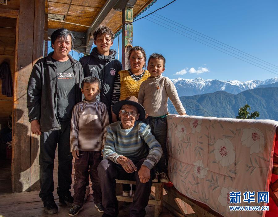 在位于西藏林芝市墨脫縣德興鄉巴登則村的家中,旺前羅布一家人合影留念(2月9日攝)。新華社記者 孫非 攝