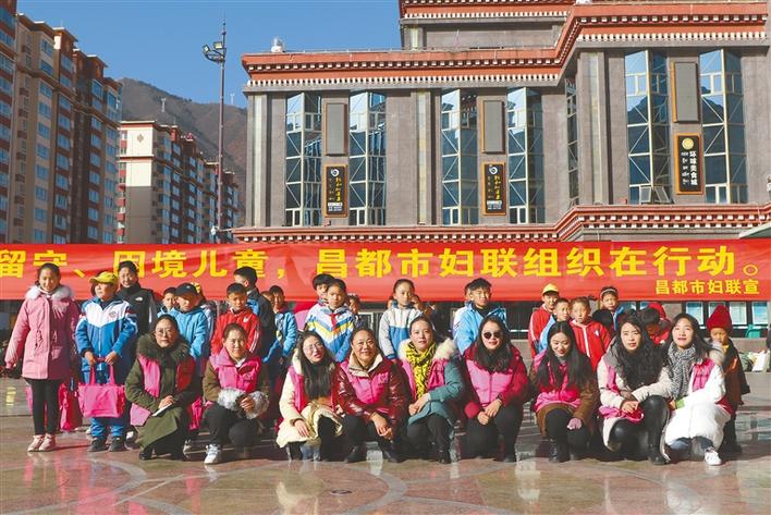 昌都市婦聯(lián)為家庭困難學(xué)生發(fā)放書(shū)包。