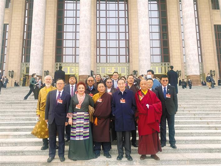 圖為3月10日下午,全國政協十三屆四次會議閉幕。圖為住藏全國政協委員在會場外合影。旦增赤列 攝