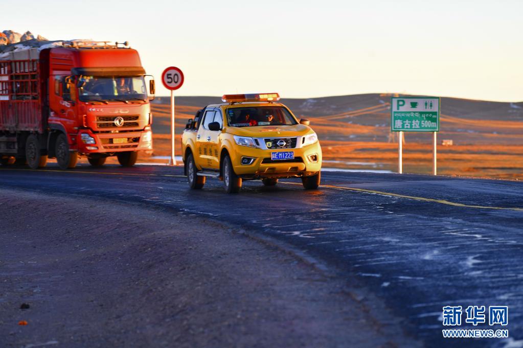 安多公路養護段工作人員在國道109唐古拉山口路段巡查(1月13日攝)。新華社記者 張汝鋒 攝