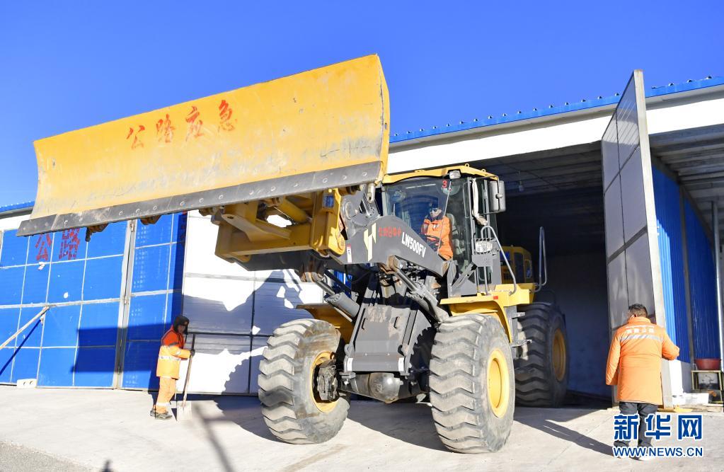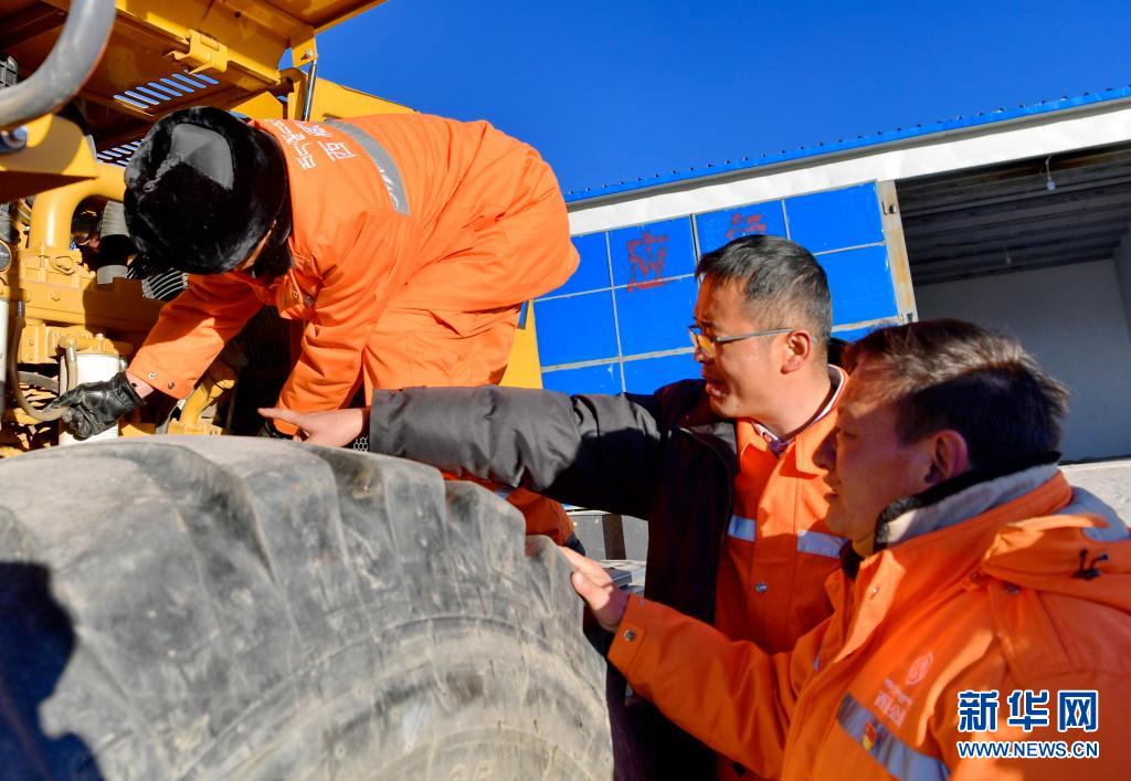 安多公路養護段工作人員在檢修施工機械(1月13日攝)。新華社記者 張汝鋒 攝