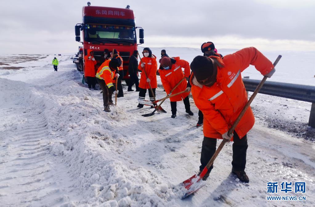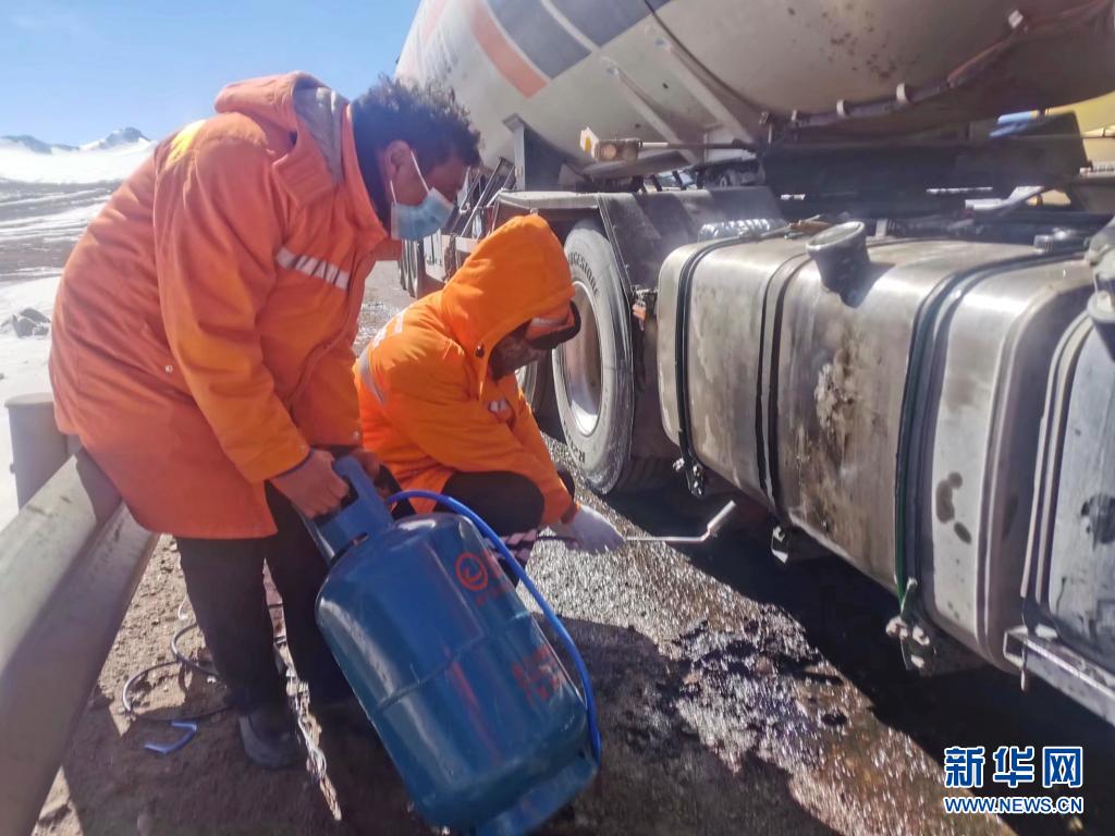 安多公路養護段工作人員幫助搶修故障車(2019年2月8日攝)。新華社發(后耀軍 攝)