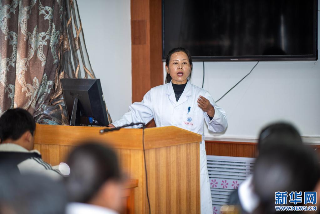 西藏藏醫藥大學色珍老師在給19級本科生教授方劑學課程(3月23日攝)。新華社記者 旦增尼瑪曲珠 攝
