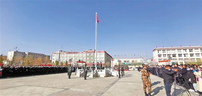 日喀則市紀念“3·28”西藏百萬農奴解放紀念日升旗儀式現場。