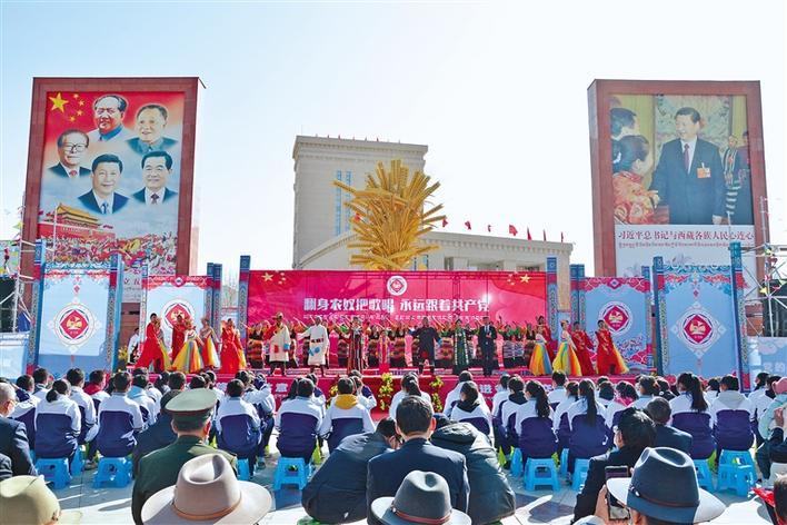 街面集中宣傳活動、創城志愿服務活動、知識問答競賽……豐富多彩、形式多樣的紀念活動,真正讓幸福的歌聲傳四方,響徹了世界屋脊,彰顯出西藏各族干部群眾邁步走在社會主義幸福的大道上。