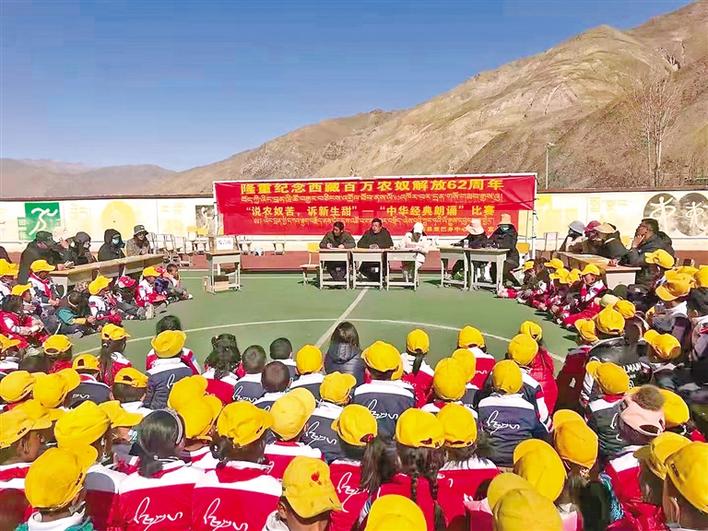 為紀念西藏百萬農奴解放62周年,仁布縣查巴鄉小學開展“說農奴苦,訴新生甜”中華經典朗誦比賽。