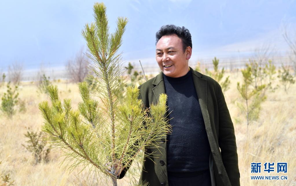 3月30日,索朗羅布與他種的樹(shù)在一起。新華社記者 覺(jué)果 攝