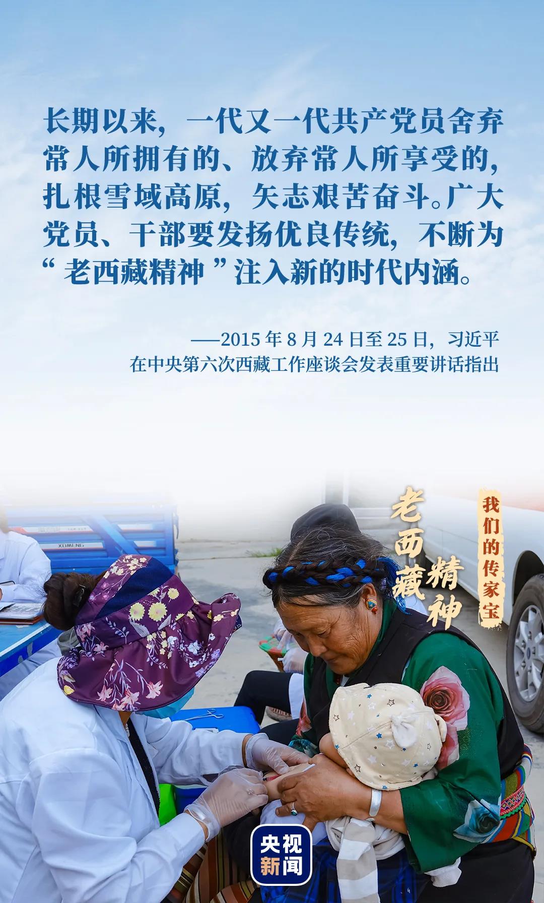 “缺氧不缺精神、艱苦不怕吃苦、海拔高境界更高,在工作中不斷增強責任感、使命感,增強能力、錘煉作風?!?020年8月28日至29日,中央第七次西藏工作座談會召開,習近平在座談會上為 “老西藏精神”作出新的時代注解。
