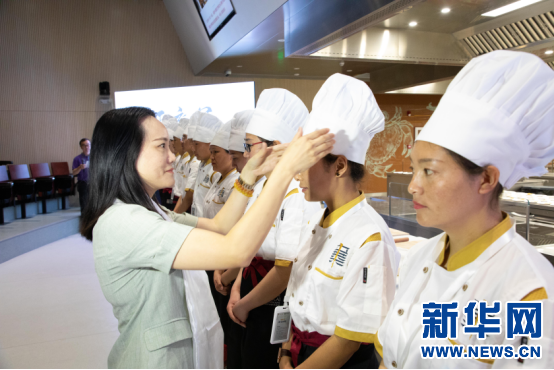 圖為東莞市稻香中菜廚藝職業培訓學院院長李坤媛與學員(4月2日攝)。新華網發(林芝市人力資源和社會保障局供圖)