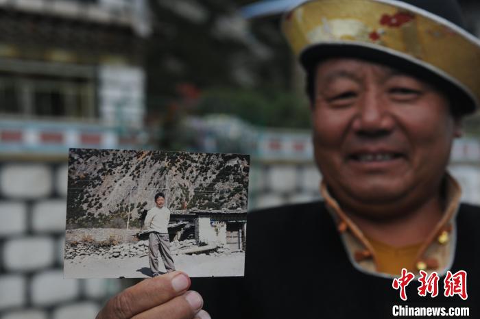 圖為林芝市工布江達縣巴河鎮雪卡村村民拿出舊照對比安居工程項目實施后的住房變化。農行西藏分行供圖 農行西藏分行供圖