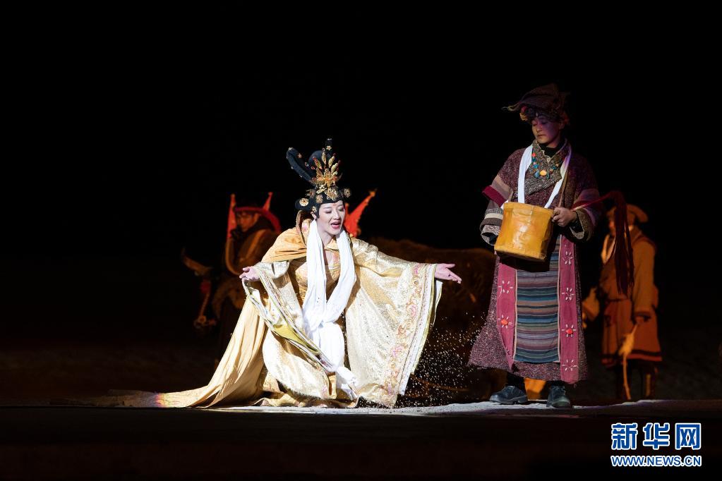 4月10日,演員在大型實(shí)景劇《文成公主》中表演。新華社 司源 攝