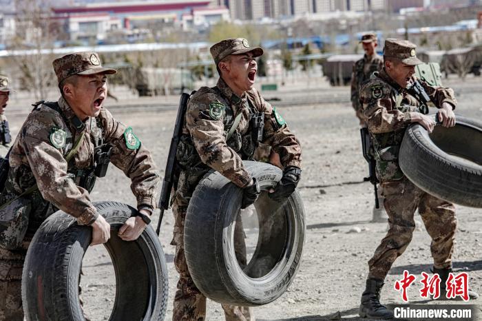 圖為西藏軍區(qū)某旅新兵進(jìn)行舉輪胎訓(xùn)練。西藏軍區(qū)某旅 攝