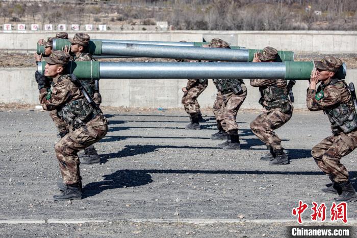 圖為西藏軍區(qū)某旅新兵進(jìn)行圓木負(fù)重訓(xùn)練。西藏軍區(qū)某旅 攝