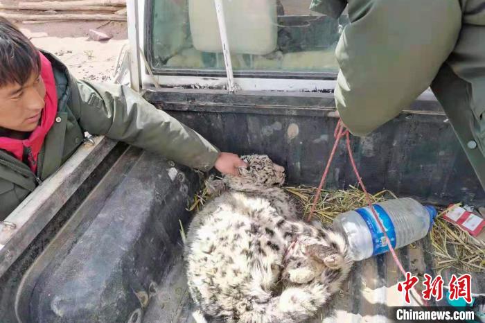 圖為三次進入西藏阿里牧民家的肇事雪豹被捕獲。西藏改則縣林業和草原局 供圖
