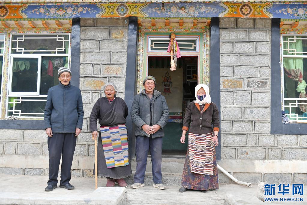 次仁老人(左一)在拉薩市當雄縣寧中鄉麥靈村的家里和家人合影(4月16日攝)。新華社記者 孫瑞博 攝