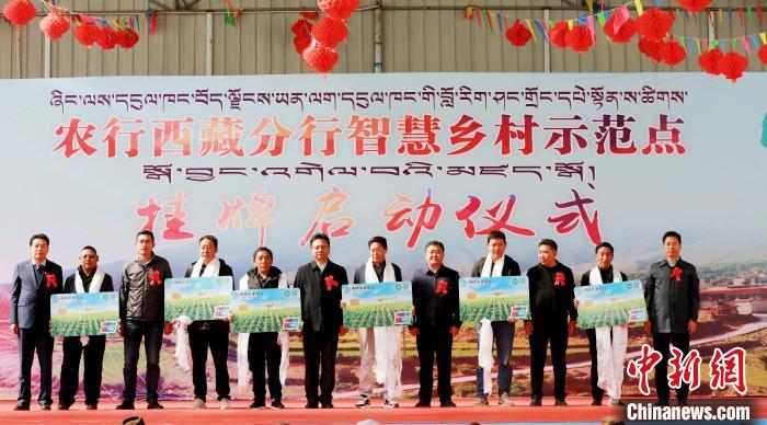 儀式上,農行西藏分行黨委委員、副行長,兼拉薩分行黨委書記、行長羅布與拉薩市堆龍德慶區副區長次旦朗杰共同為首個智慧鄉村示范點揭牌。