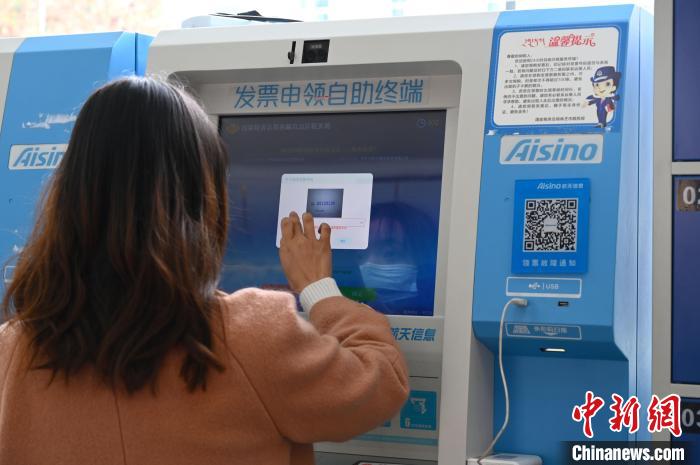圖為一名企業(yè)財(cái)務(wù)人員通過(guò)發(fā)票申領(lǐng)自助終端申領(lǐng)發(fā)票。