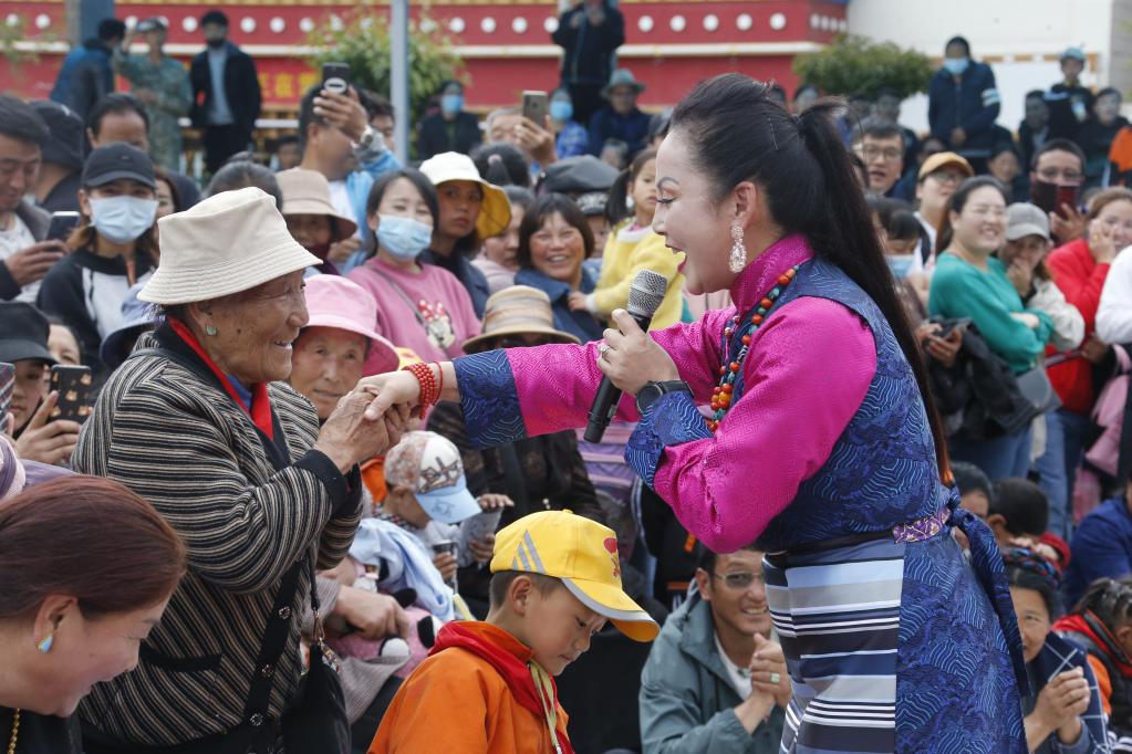 在下鄉途中,德西美朵不僅給群眾演唱,而且還積極向當地老百姓學習民歌。她說:“我希望可以通過我的演繹讓更多人聽到西藏群眾的聲音。”