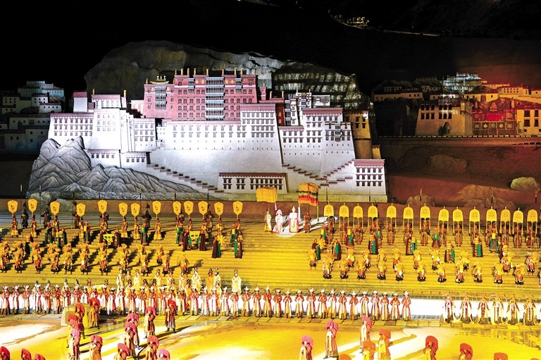 圖為《文成公主》大型實(shí)景劇演出現(xiàn)場。(資料圖片)記者 李洲 次旺 攝
