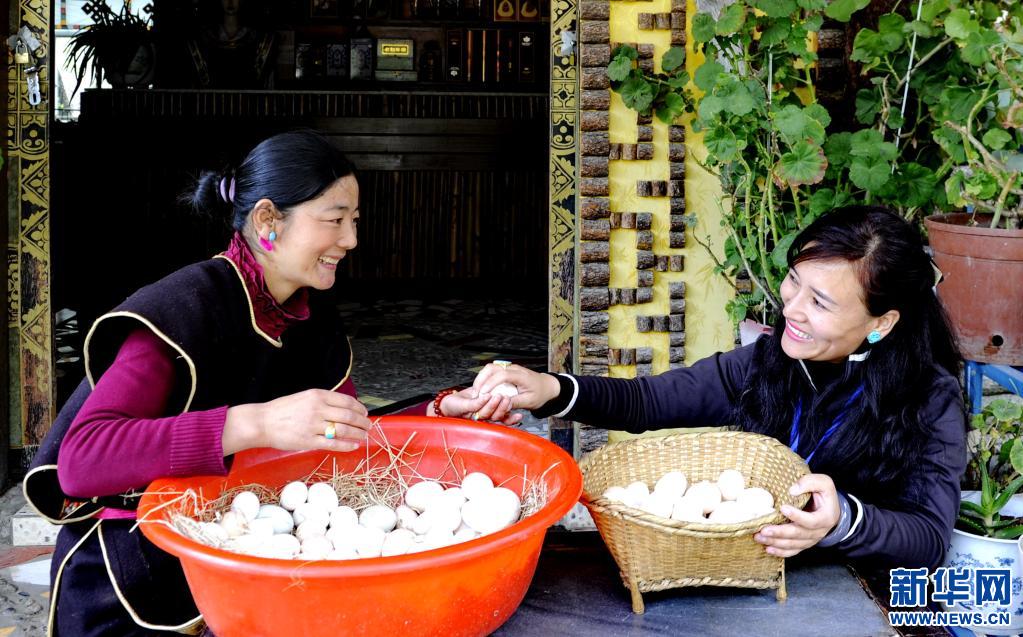 西藏林芝市魯朗鎮村民整理收集來的藏雞蛋(2016年4月6日攝)。新華社記者 張汝鋒 攝