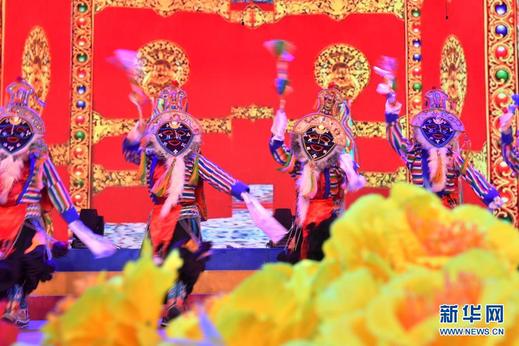 6月12日,在西藏拉薩市的自治區群藝館,演員表演藏戲《吉祥歡歌》。新華社記者 孫瑞博 攝