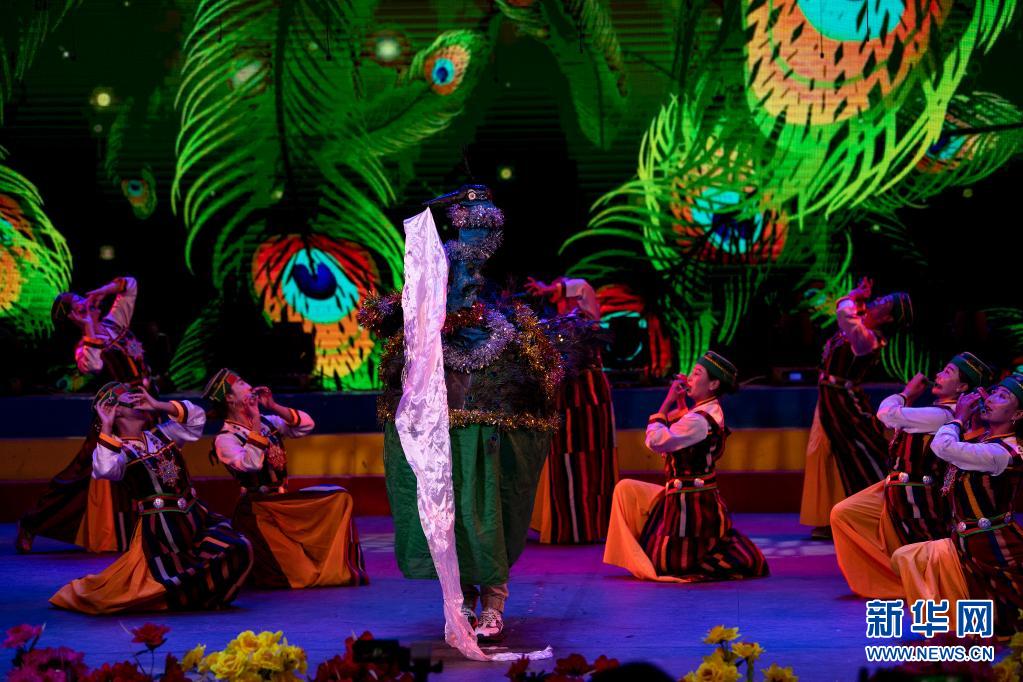6月12日,在西藏拉薩市的自治區群藝館,演員表演《孔雀舞》。新華社記者 孫瑞博 攝