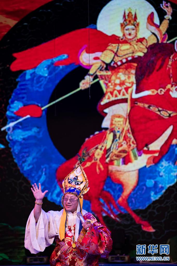 6月12日,在西藏拉薩市的自治區群藝館,格薩爾西藏自治區級代表性非遺傳承人扎西多吉表演說唱《卓姆妙音》。新華社記者 孫瑞博 攝