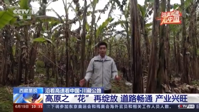 總臺記者 孟湛東:我現在是在扎墨公路沿線的一片香蕉林,墨脫地區的氣候條件跟西藏其他地方相比有很大的不同。在公路沿線,經常可以看到像甘蔗、檸檬、香蕉等等這樣的熱帶經濟作物。近幾年,扎墨公路貫通了之后,很多游客會駕車,通過公路進入到墨脫旅游,所以在沿線就會有很多的蕉農砍下自己的香蕉,拿到路邊進行銷售。