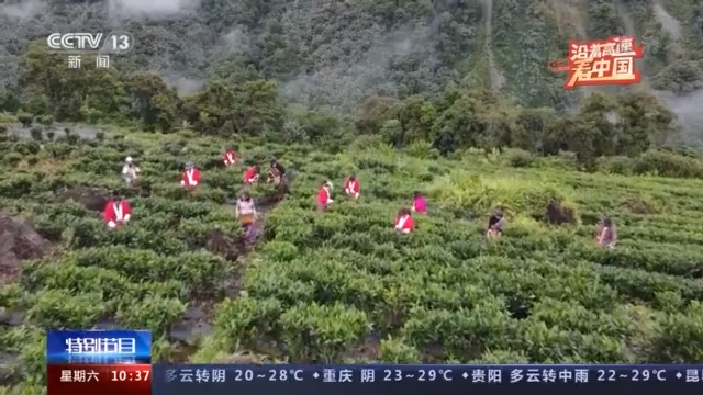 總臺記者 孟湛東:在公路沿線還可以看到這樣大片的茶園,這一片茶場叫作果果塘茶場。下車之后發現身邊有很多的這樣的采茶師傅已經開始聚在一起采摘今年的新茶了,墨脫縣的茶葉種植總面積是超過了25000畝,人均達到2.5畝。2016年,全縣農牧民人均可支配收入是近8000元,而到了去年這樣一個數字是提升到了12000多元。