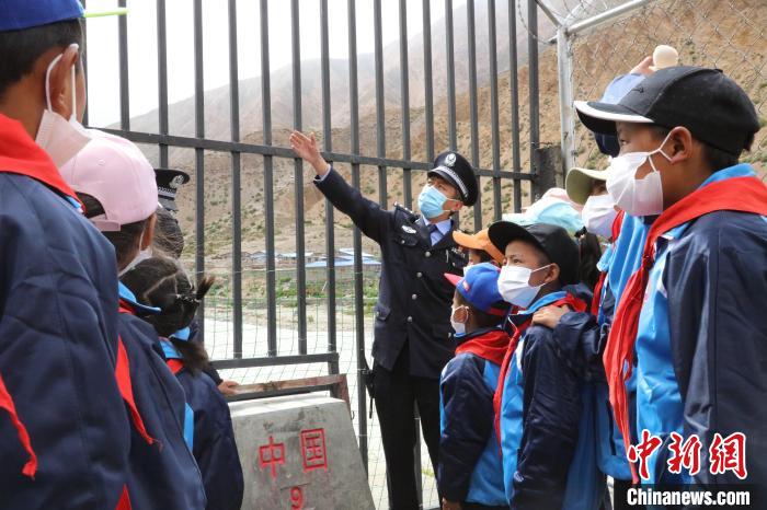 “同學(xué)們,現(xiàn)在你們看到的就是屹立在中尼邊境的9、10號界樁,界樁代表著國家的形象,我們要像愛護自己的眼睛一樣愛護、守護它。”普蘭出入境邊防檢查站民警格桑倫珠正在為學(xué)生們講述中尼邊境界碑的故事。