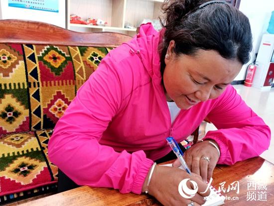 扎西梅朵在認真寫字。人民網 李海霞攝