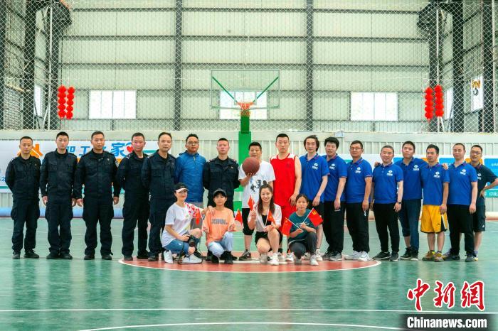 圖為友誼籃球賽后的隊員合影。 江才云旦 攝