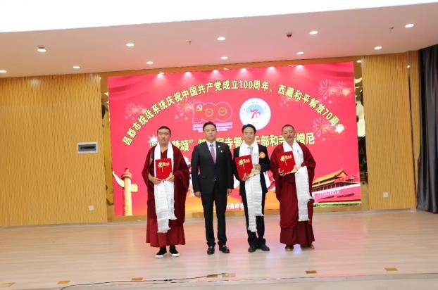 7月2日,昌都市委統戰部以慶祝中國共產黨成立100周年、西藏和平解放70周年“為黨贊頌”為主題,舉辦全市第二屆寺管會干部和僧尼演講比賽,市委常委、統戰部長,市政協黨組副書記澤仁俊美出席,市委宗教工作領導小組成員單位負責人和強巴林寺、卡若區寺管會干部代表、僧尼代表觀看了比賽。市委組織部、市委宣傳部、市委統戰部、市民委、市文化局、市宗教局等單位負責人擔任評委。