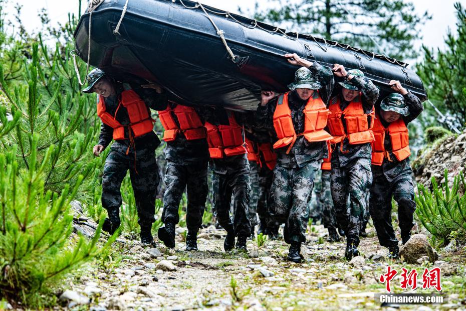 圖為官兵正在抗舟進行快速機動。王述東 攝