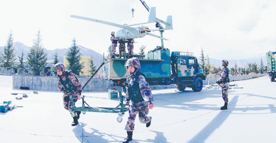 女子無人機飛行班正在進行無人機吊裝工作。李倫攝(人民視覺)