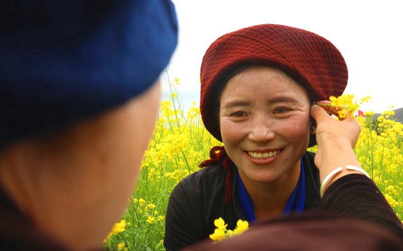 當地群眾在花田中。洛桑克珠攝